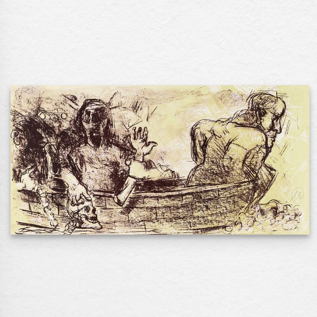 Lithografie, überdruckt mit Holzschnitt auf Rives